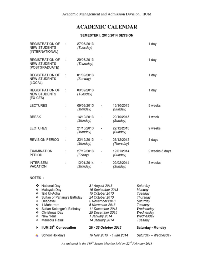 Notice on amendment of cfsiium academic calendar for semester 3 2018 2019. Iium academic calendar 1314 academic term educational institutions. Uab academic calendars by year. Former iium foundation programmes admission matters. Orientation and registration of new entrants.