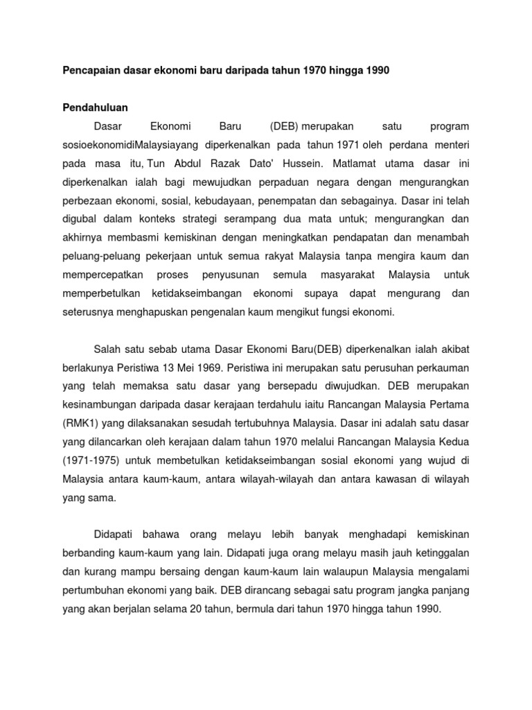 Mempercepatkan pencapaian matlamat pencapaian dasar ekonomi baru iii. Kejayaan dasar ekonomi baru perlu diteruskan video dailymotion. Mengenalpasti pencapaian dasar ekonomi baru selama 20 tahun dilaksanakan. Pencapaian dasar ekonomi baru daripada tahun 1970 hingga 1991 getfgfdjjd for more information and source, see on this link : Pelbagai usaha membasmi kemiskinan telah dilaksanakan sepanjang perlaksanaan deb, antaranya;.